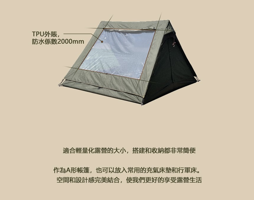 內帳外帳兩用: 內帳紗網透氣涼爽,外帳TPU窗可擋風觀景