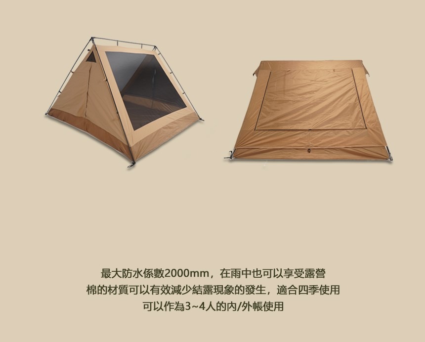 帳篷: TC 滌棉 210g, 棉 65%, 滌綸35%