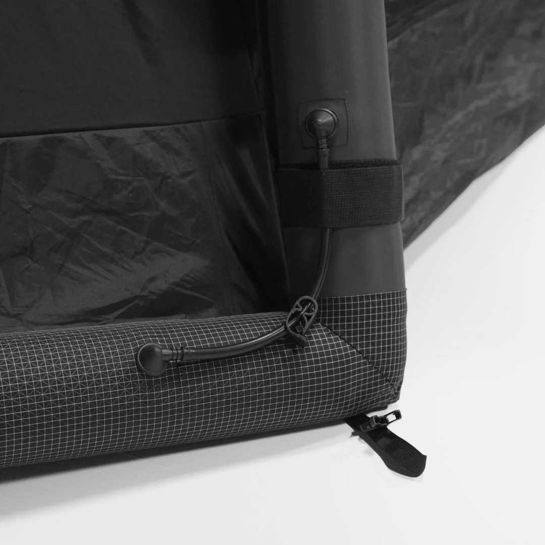 AIR BEAM 氣柱系統:採用單一氣閥注氣系統,搭配多氣室結構,並配有自動洩壓閥,確保帳篷穩定性與安全性。 帳篷本體:使用 T/C 棉布材質,具有透氣且防焰的特性。內部空間寬敞,設有多個窗戶和門,並配備內部網狀收納袋、燈具吊掛設計,以及雙側電源線孔,提升使用便利性。 外帳:採用 70D 聚乙烯抗撕裂材質,前門可作為天幕使用,後帳設計可拆卸,並配有 TPU 材質的天窗,增加採光與通風效果。 充氣幫浦:配備螺旋結合接頭的充氣幫浦,方便快速搭建帳篷。 收納袋:提供雙用背包設計,具備可壓縮收納的功能,方便攜帶與存放。 完整配件組:包含 TPU 透明窗和地墊,滿足露營時的多樣需求。