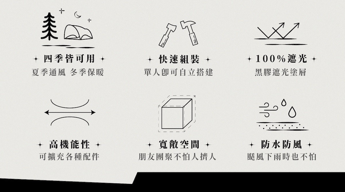 ✦ 免固定營繩,可快速自立